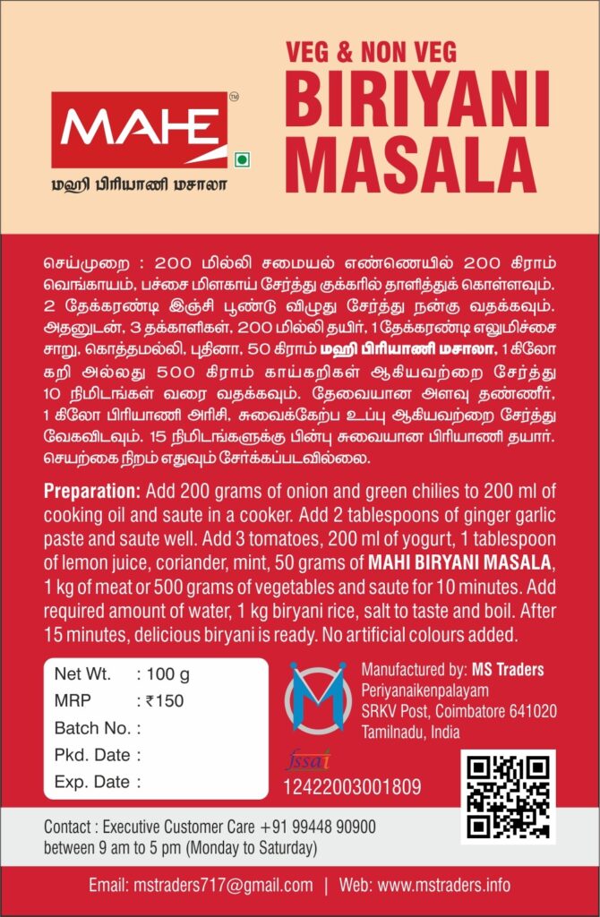 Experience the essence of authentic biryani with our flavorful masala blend. Made from premium spices, this ready-to-use mix delivers consistent taste, vibrant aroma, and a true taste of tradition in every bite.